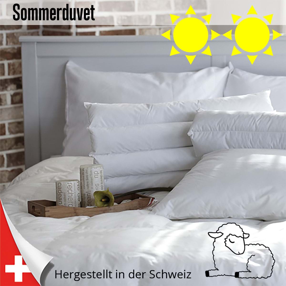 Leichte und wunderbar luftige Sommerdecke mit einer Füllung aus 100% Schweizer Schafwolle.